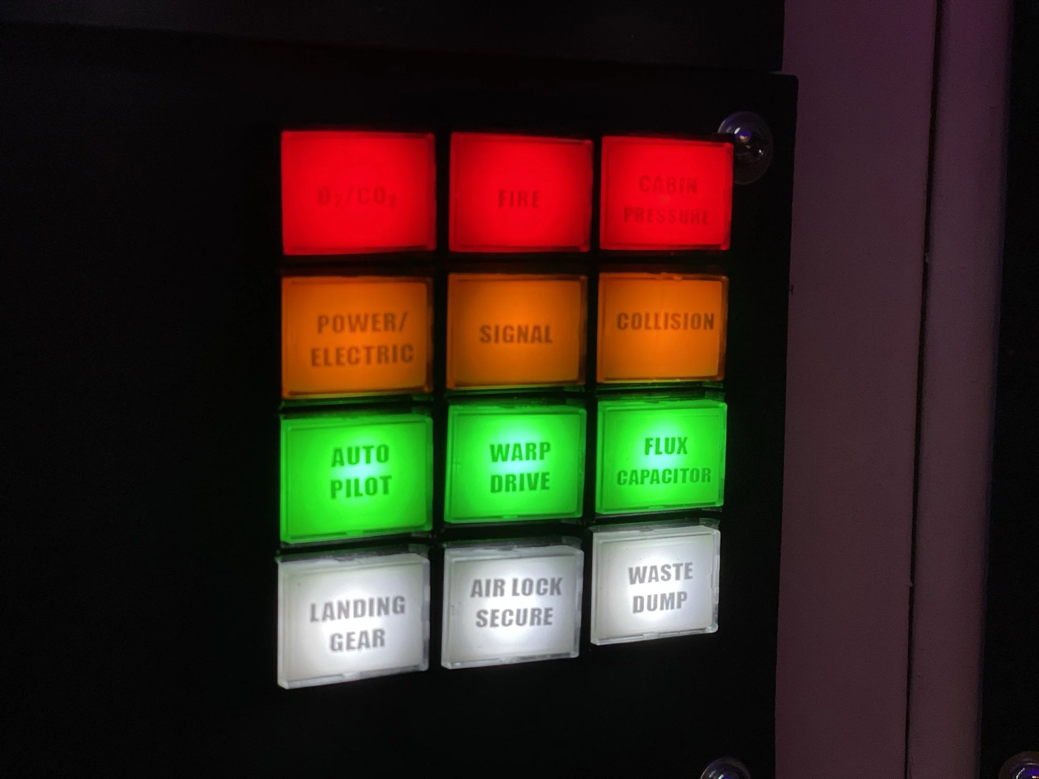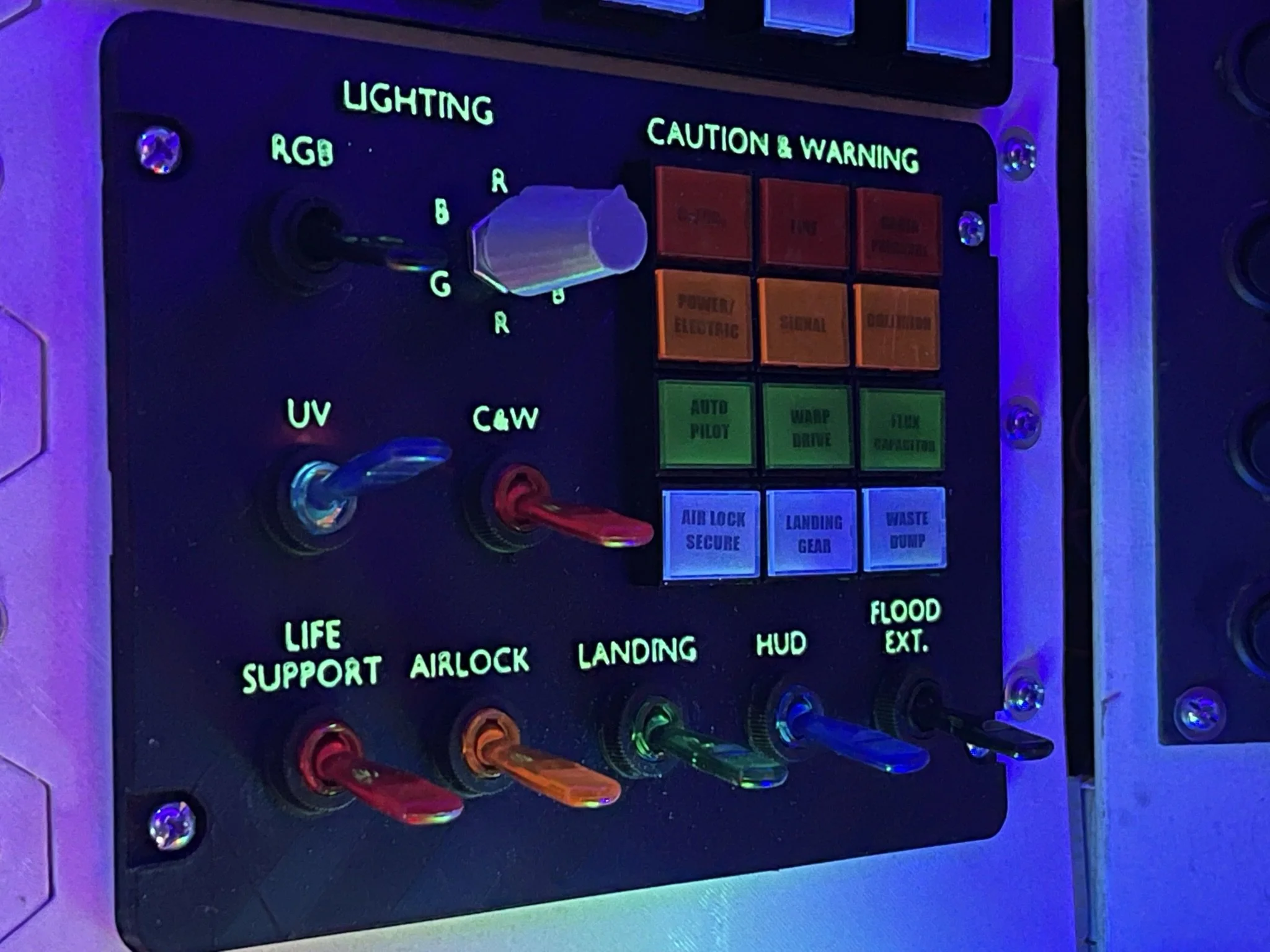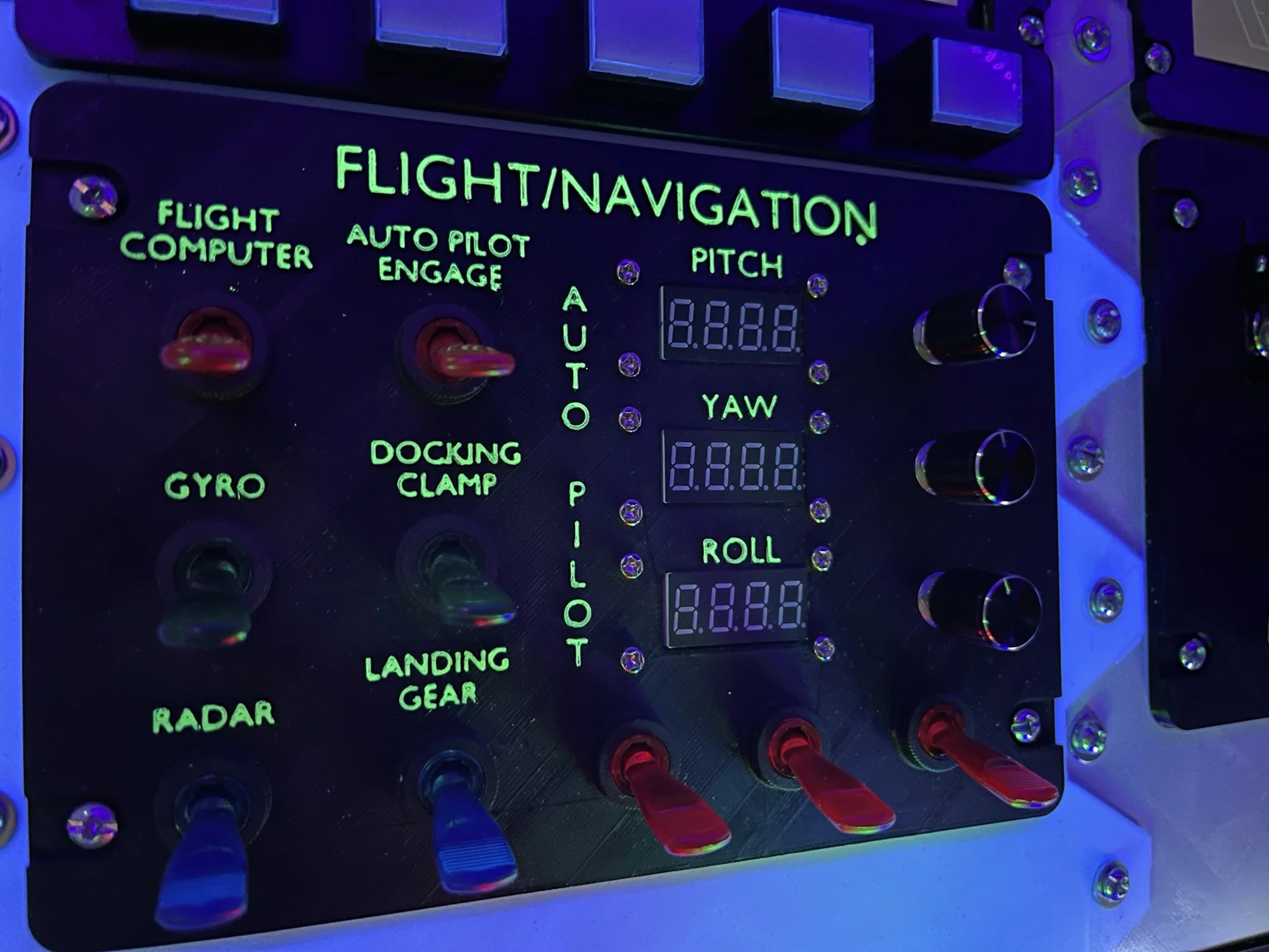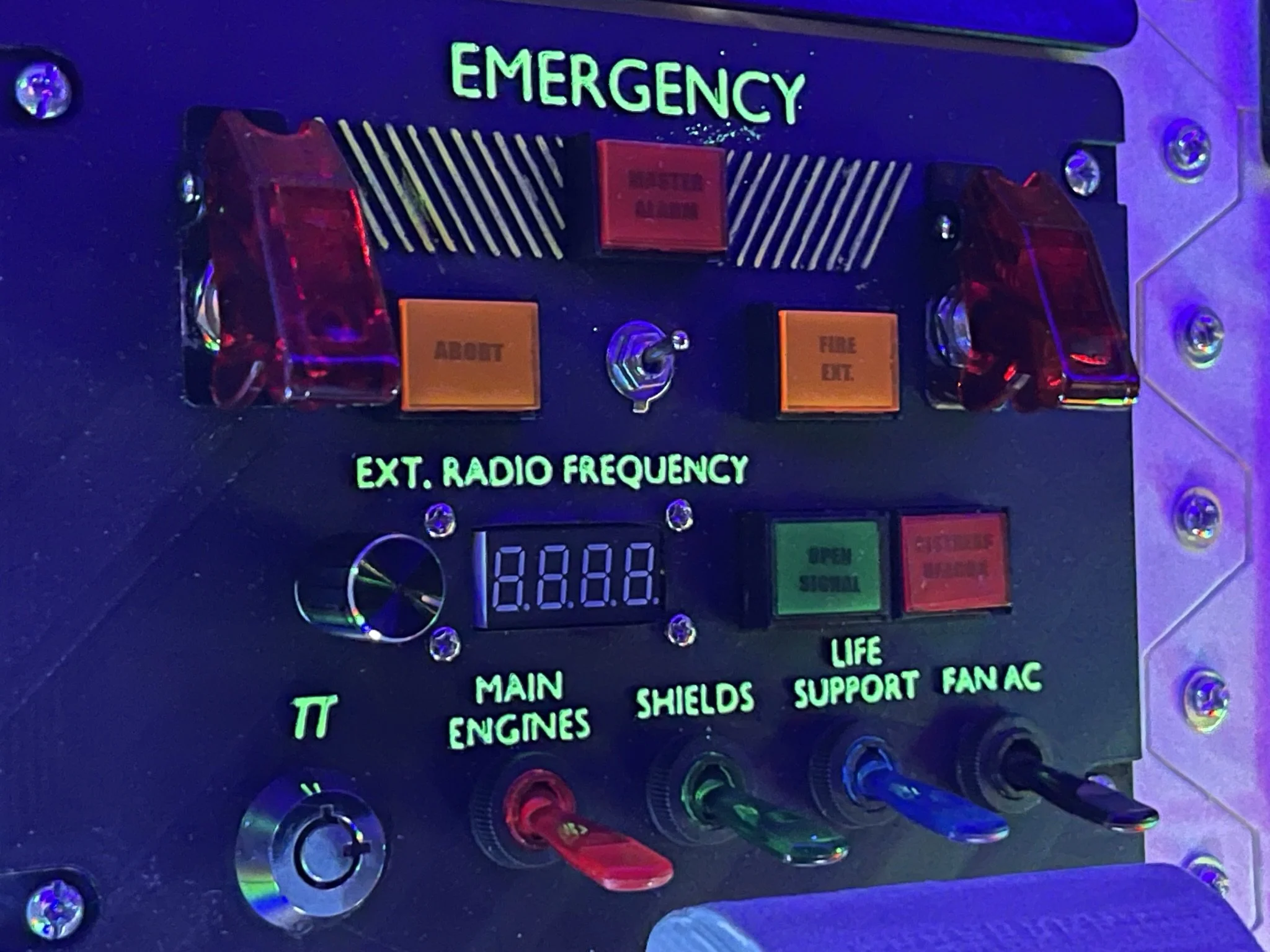 At first, I just wanted lights and switches that clicked and glowed. But when I stumbled across a Raspberry Pi setup loaded with (totally legitimate, definitely not bootleg) retro arcade games, the mission changed. With 3 relatively inexpensive 8” LCDs wired through an HDMI splitter, the ship became not only a cockpit but also a time machine into my own childhood.