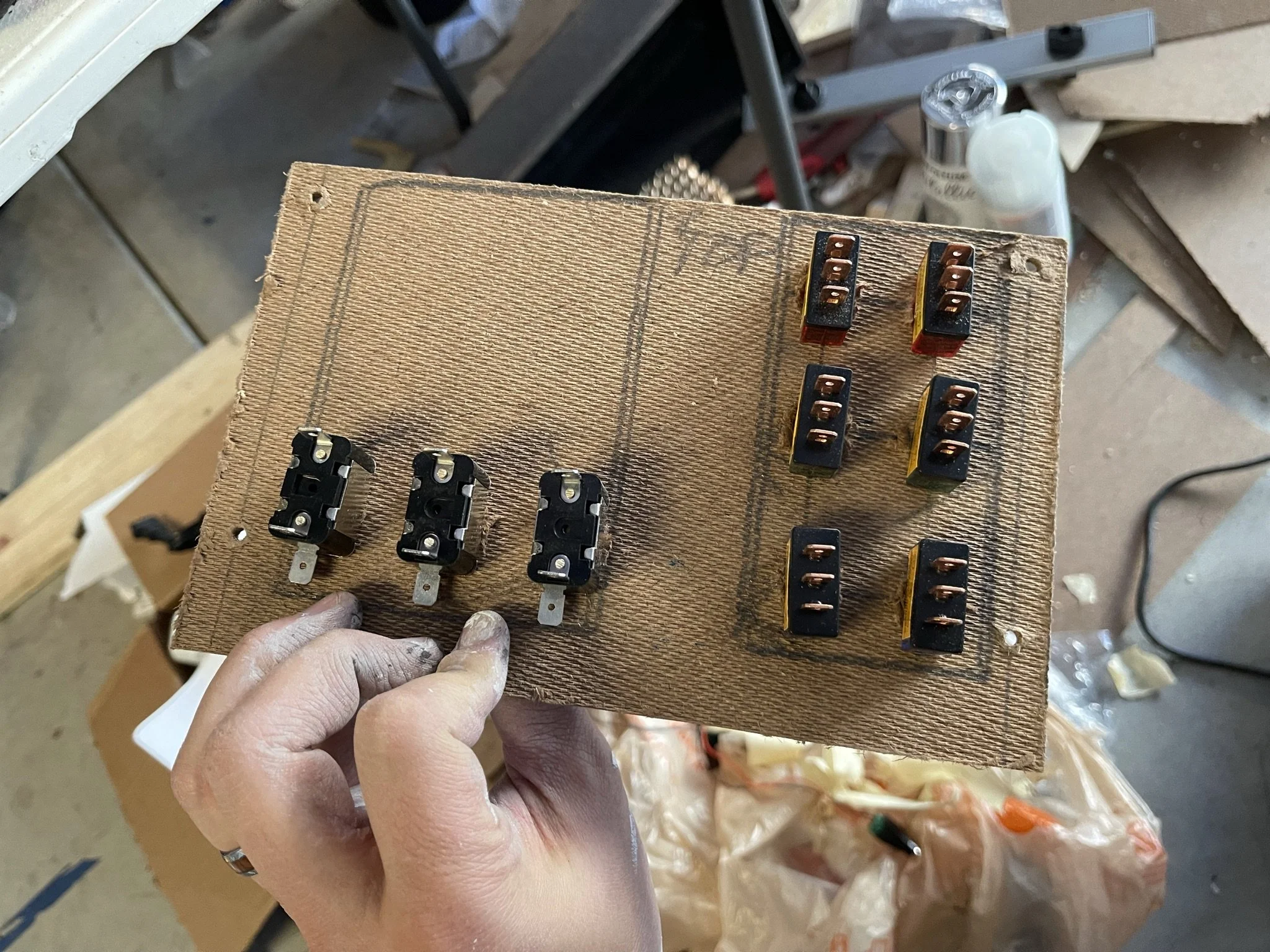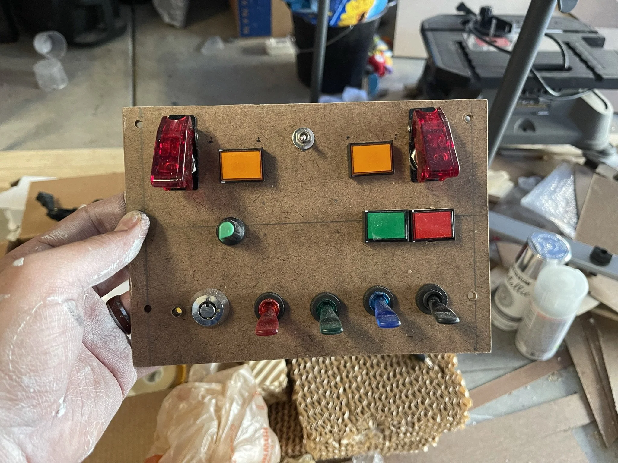 Like every kid, my kids LOVE space. One afternoon we were doodling buttons on an old cardboard box, pretending it was a spaceship control panel. That tiny box brought back a memory: when I was a kid, after watching Apollo 13, my grandfather (a former pilot) built me a cockpit console from a pegboard and a pile of fifty-cent light switches. It was basically a giant fidget board—perfect for his undiagnosed ADHD grandson.