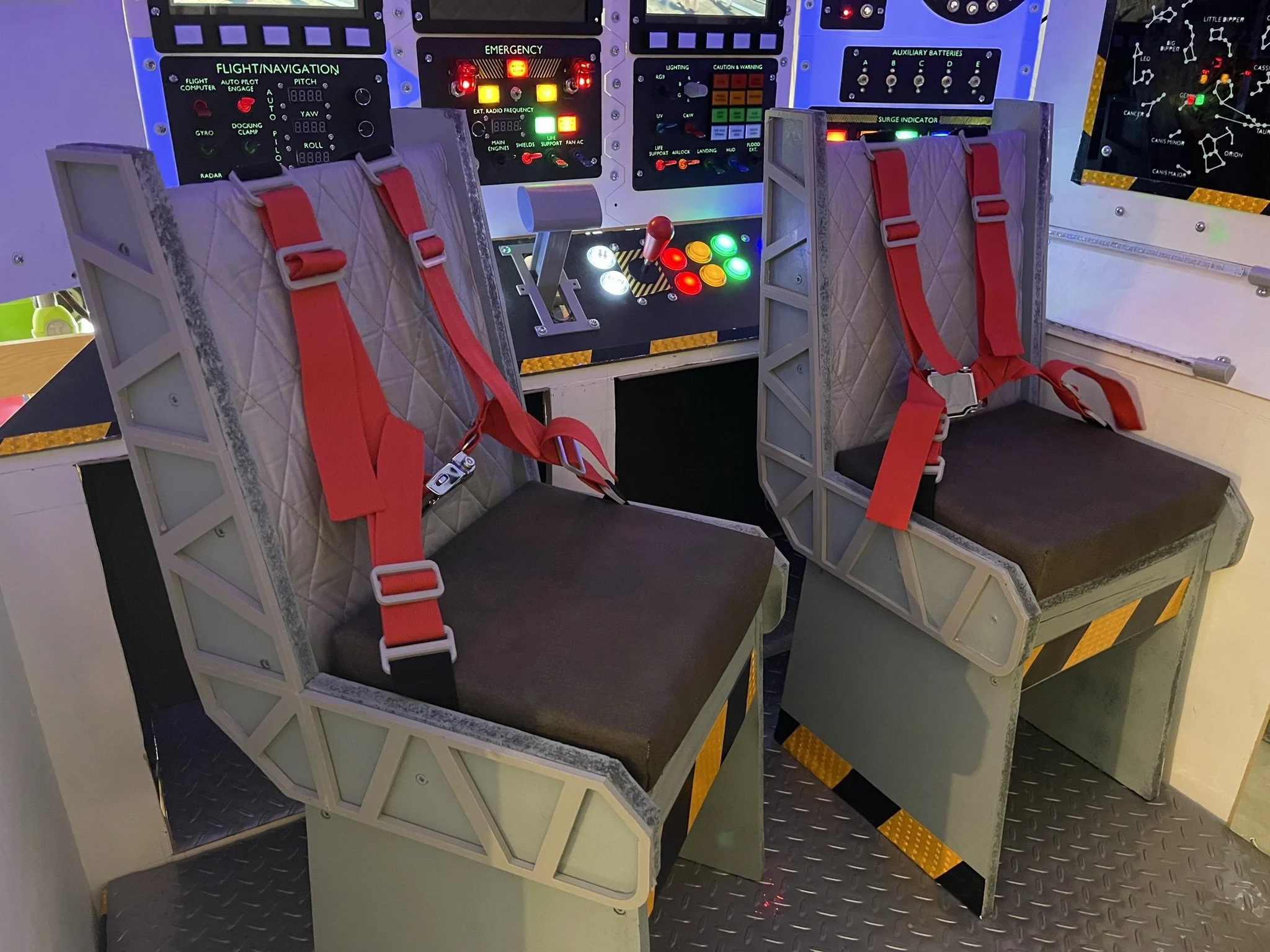 With the sound, the projection, and even seats with real airplane buckles, our garage had officially transformed. We didn’t just have a spaceship anymore—we had our own theme park attraction.