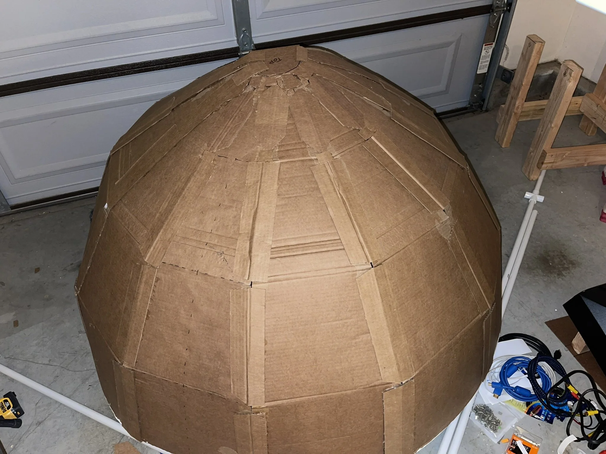 So I built a projection dome outside the cockpit and started casting whole worlds across the garage ceiling. With the right footage, my kids weren’t just sitting in a cockpit—they were transported. We “rode” Disneyland’s It’s a Small World in full dome projection, and even found restored 4K footage from Universal’s Back to the Future ride. Since that footage was designed for a dome, it projected beautifully, like we’d brought the ride itself into our garage.